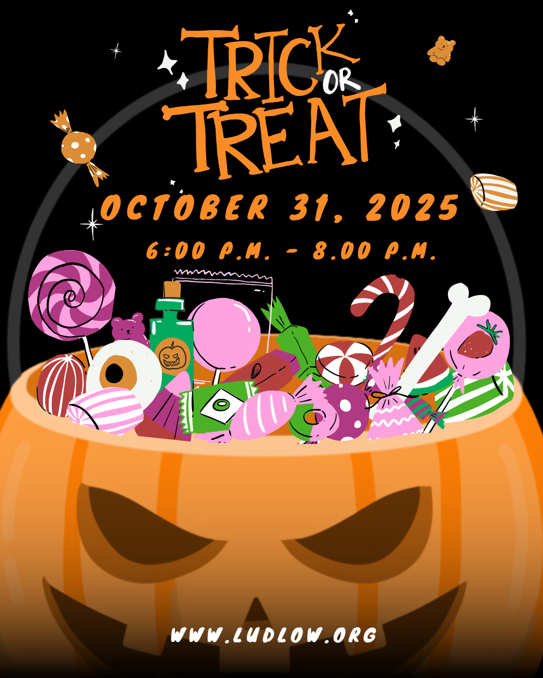 Trick-or-Treating in the city of Ludlow will be on Friday, October 31, 2025, from 6:00 p.m. until 8:00 p.m.