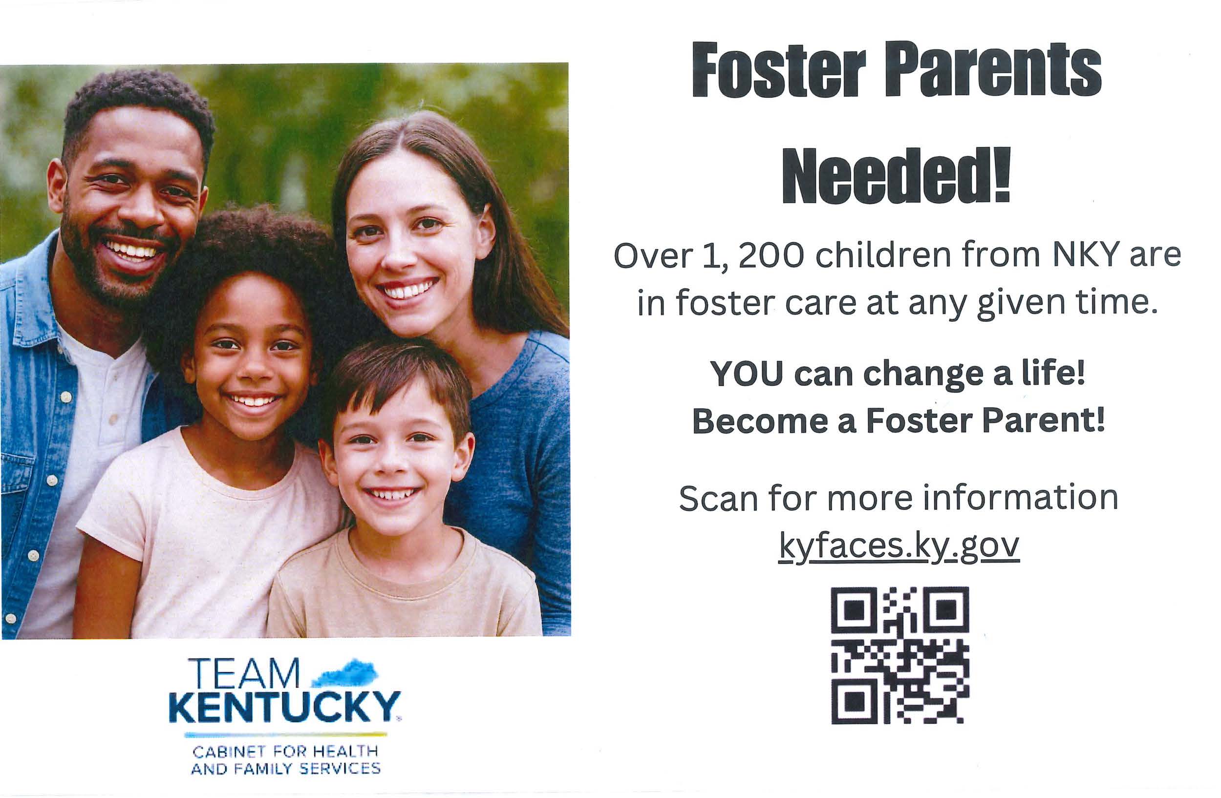 The Cabinet for Health and Family Services and the Kentucky Foster Adoptive Caregiver Exchange System (KY FACES) are in need of foster families. Over 1,200 children from Northern Kentucky are in foster care at any given time.