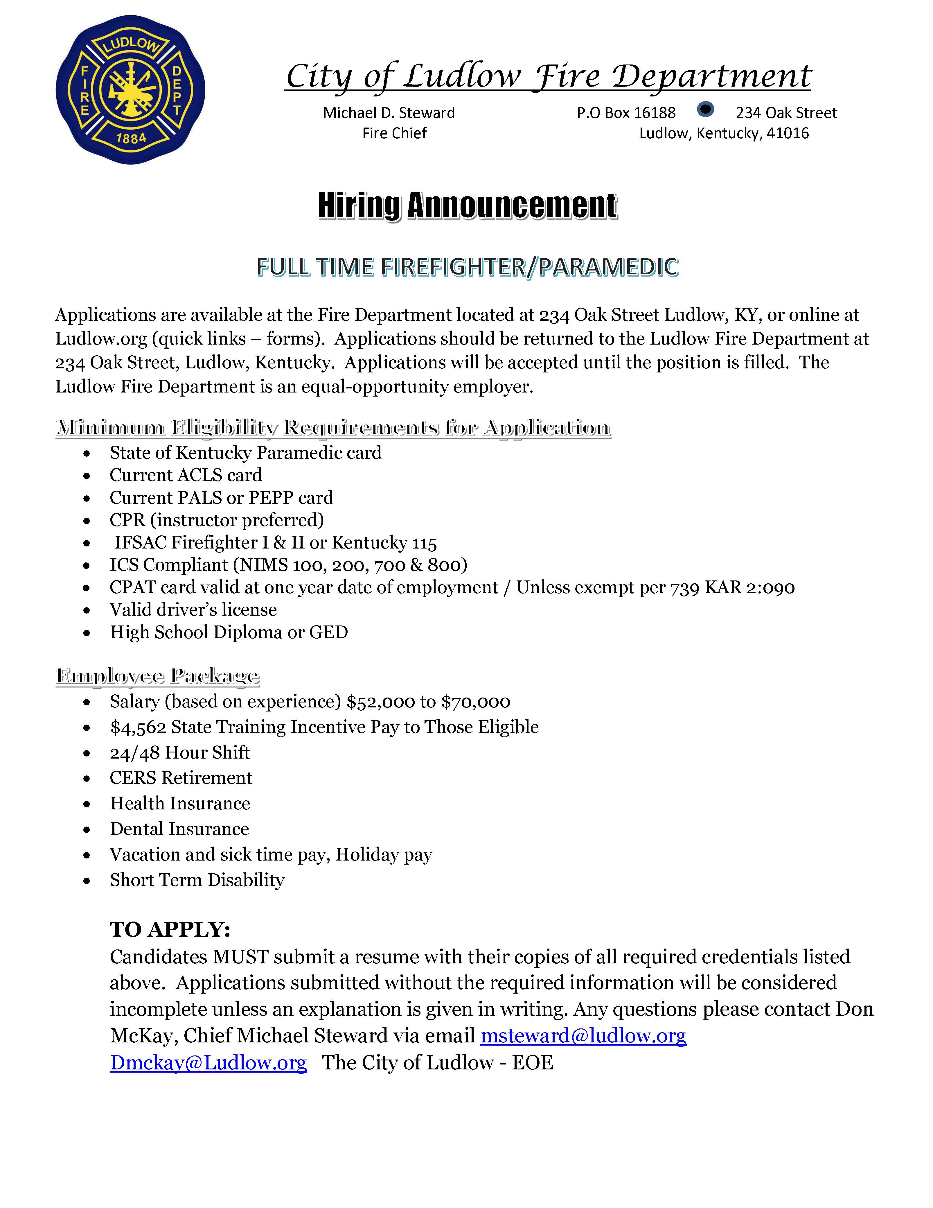 Now Hiring--Full-Time Firefighter/Paramedic